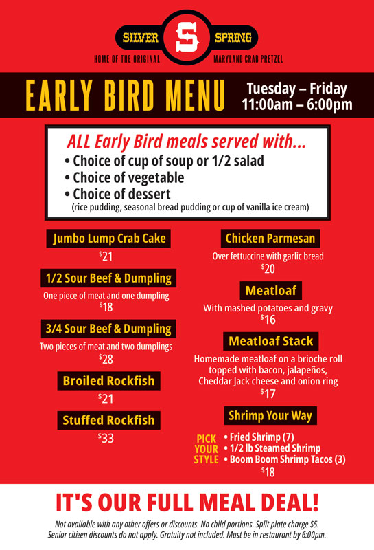 At Silver Spring Mining Company, we pride ourselves on our service, quality of food and family atmosphere. From appetizers to main course to dessert, we have a variety of food that should please everyone.
